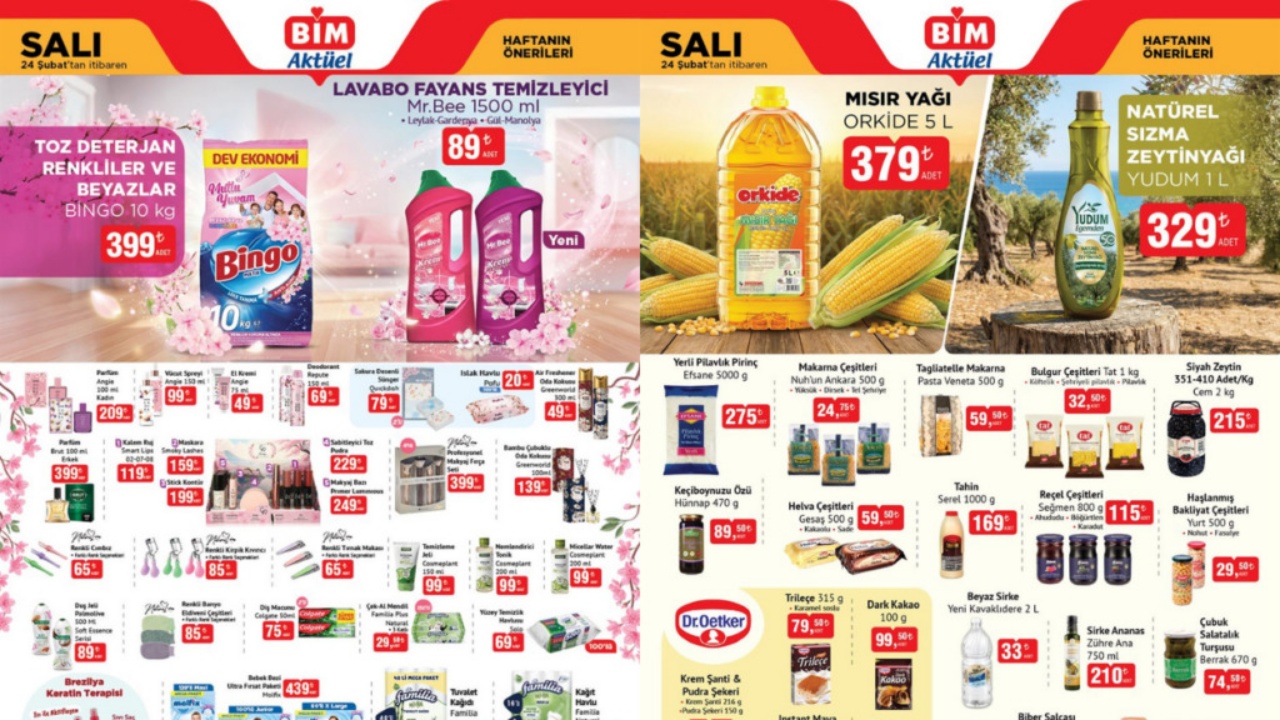 BİM, 24 Şubat 2026’dan itibaren geçerli olacak yeni Aktüel kataloğuyla temel gıdadan temizlik ürünlerine, atıştırmalıklardan kişisel bakıma kadar onlarca üründe büyük fiyat avantajları sunuyor.