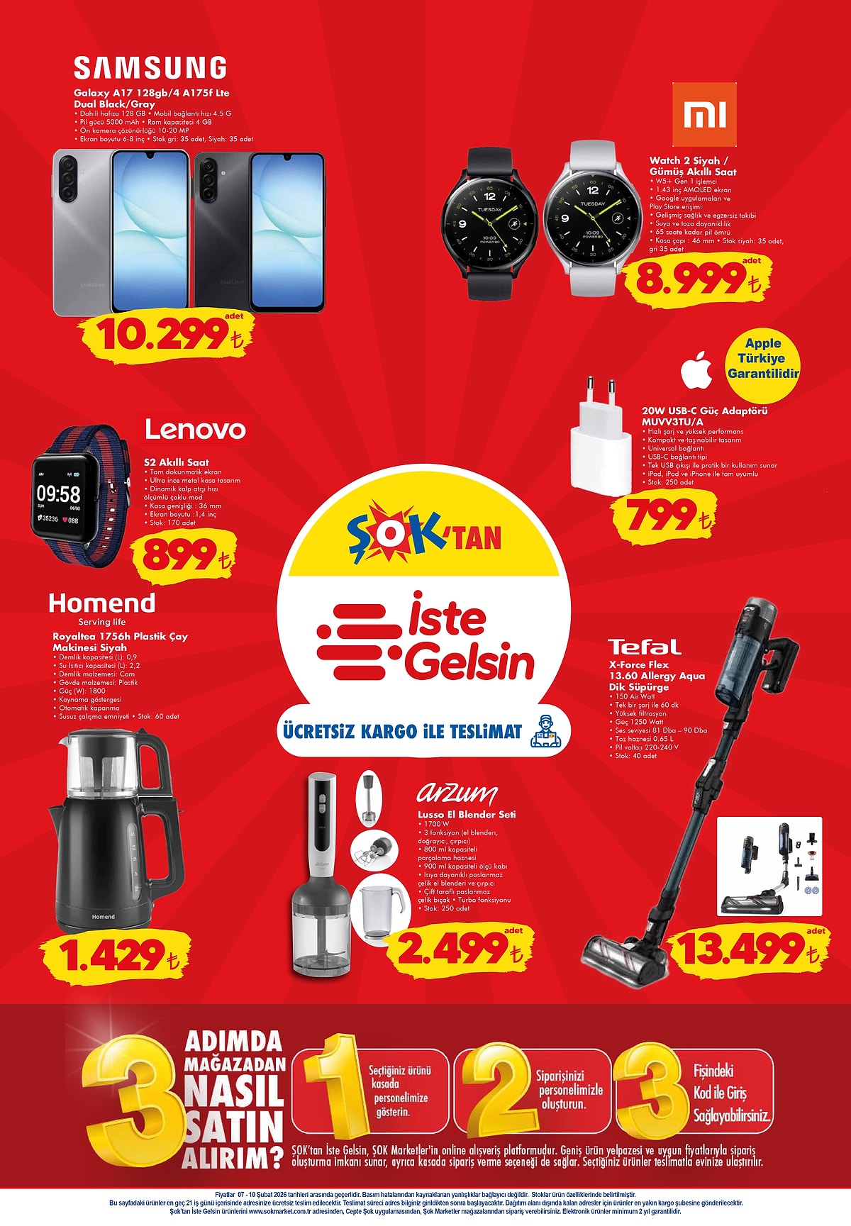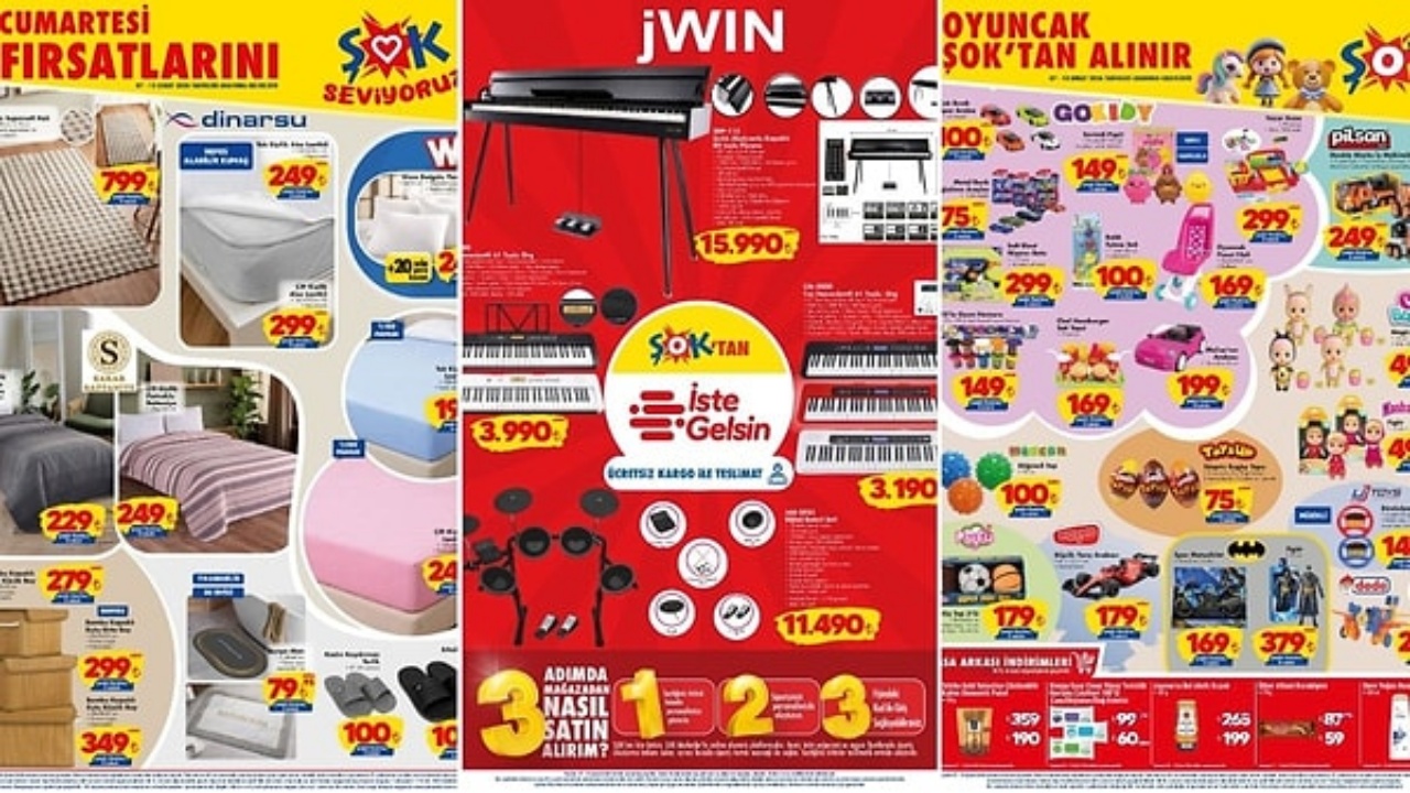ŞOK Market, 7 – 10 Şubat 2026 tarihleri arasında geçerli olacak yeni aktüel ürünler kataloğuyla ezber bozuyor. Dijital bateri setinden çekiş aksiyonlu piyanoya, Samsung akıllı telefonlardan kışlık ev tekstiline kadar dev bir ürün yelpazesi, uygun fiyat ve taksit avantajlarıyla satışa sunuluyor.